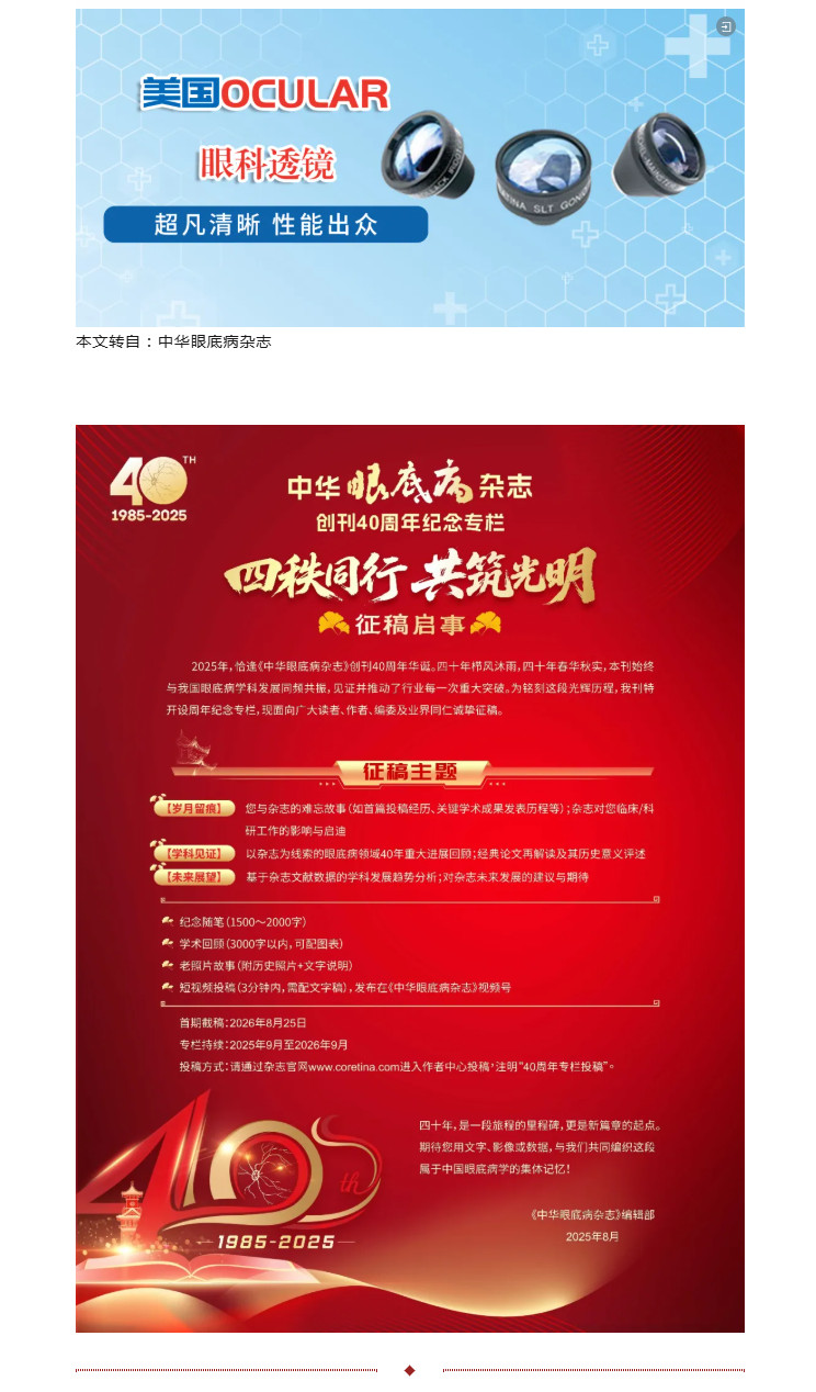 《中华眼底病杂志》创刊40周年专栏“四秩同行 共筑光明”征稿啦!---2025-09-03 发布时间:2025-09-03 来源: 作者: