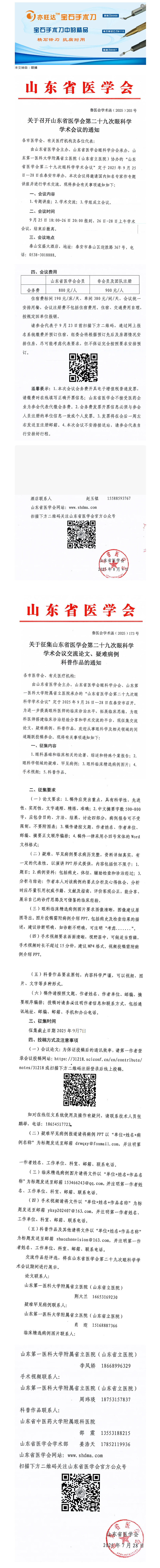 9月26-28日泰安 | 山东省医学会第二十九次眼科学学术会议---2025-09-04 发布时间:2025-09-04 来源: 作者: