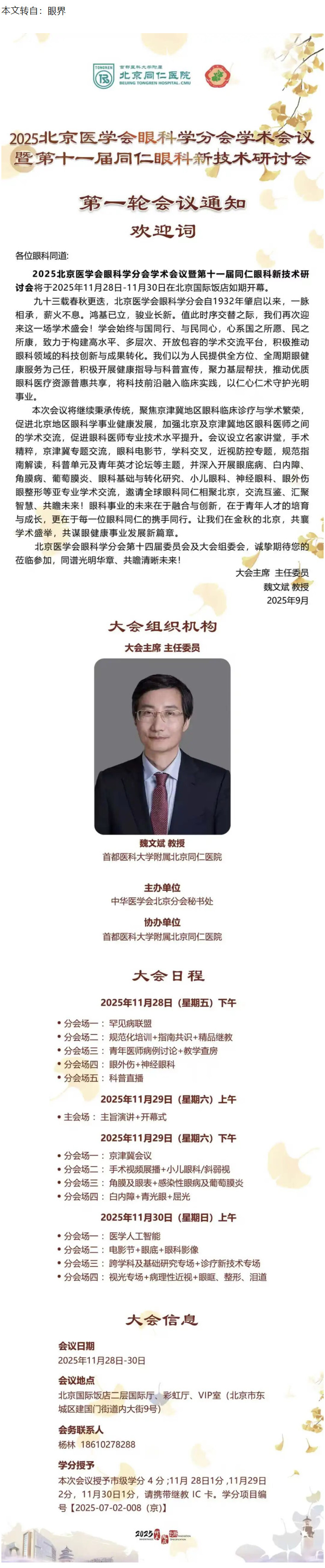 11.28-30北京丨2025北京医学会眼科学分会学术会议暨第十一届同仁眼科新技术研讨会---2025.9.18 发布时间:2025-09-18 来源: 作者: