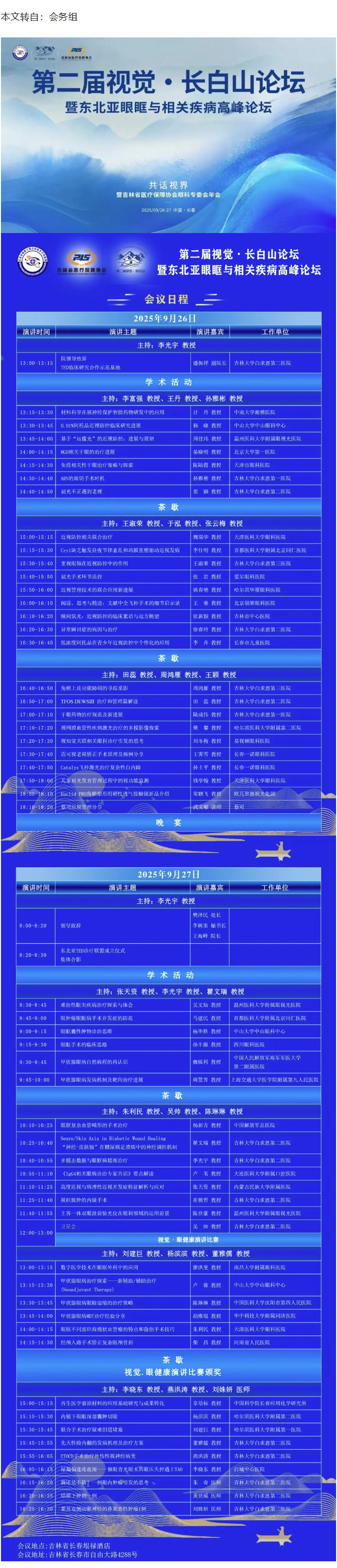 9.26-27 长春丨第二届视觉长白山论坛暨东北亚眼眶与相关疾病高峰论坛---2025.9.22 发布时间:2025-09-22 来源: 作者: