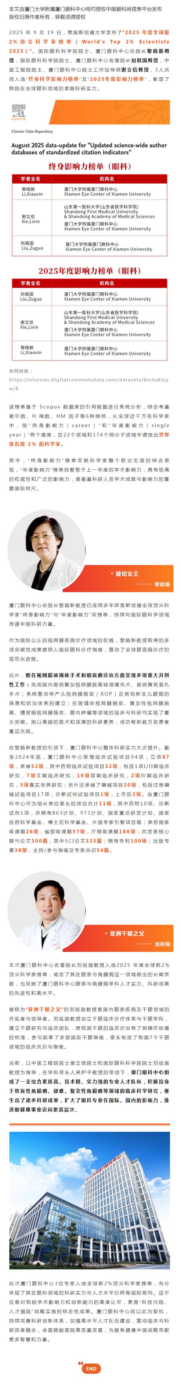 2025年全球前2%顶尖科学家榜单发布!我院3名专家再次荣登双榜单!--2025-09-23 发布时间:2025-09-23 来源: 作者: