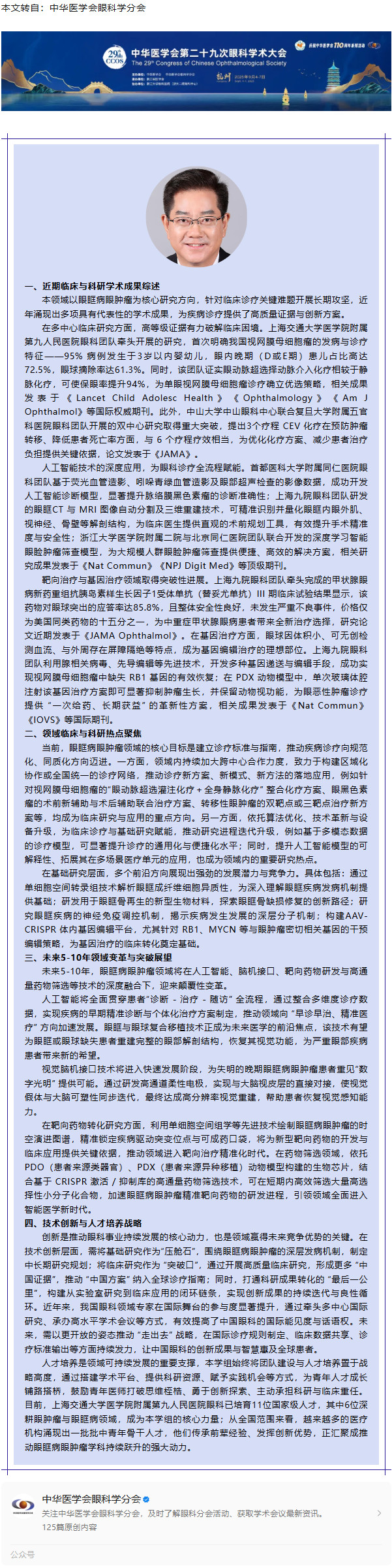 大师论道 | 眼眶病眼肿瘤领域临床科研成果 热点聚焦与未来展望——范先群院士---2025.09.09 发布时间:2025-09-09 来源: 作者: