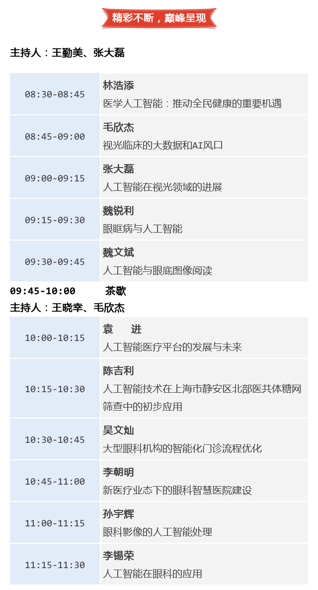 本文关键词:眼科E20新设备新技术高峰论坛,眼科人工智能应用研究专场 |