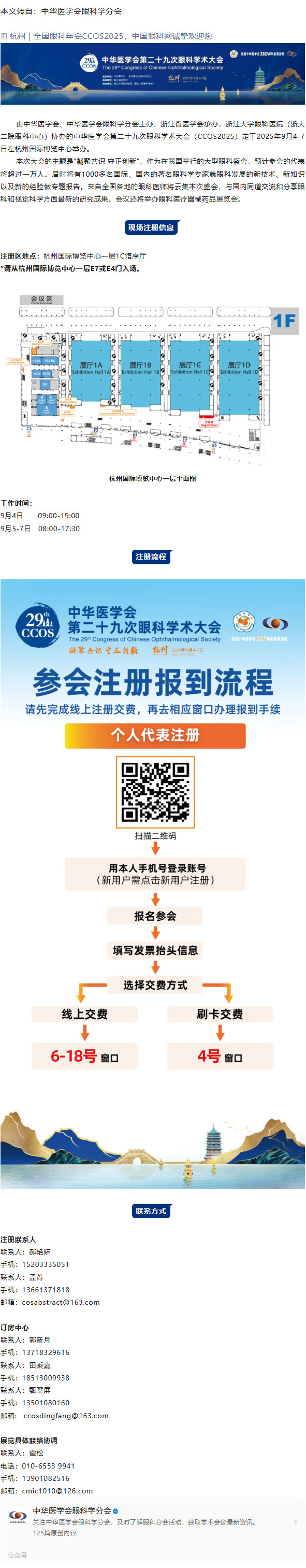 现场报到须知 | 中华医学会第二十九次眼科学术大会(CCOS2025)---2025.09.03 发布时间:2025-09-03 来源: 作者: