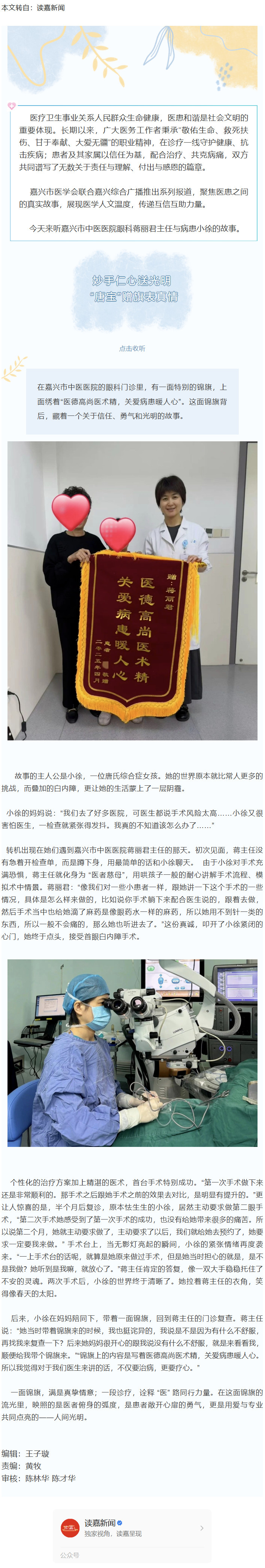 医师节特辑——蒋丽君:妙手仁心送光明 “唐宝”赠旗表真情---2025.8.18 发布时间:2025-08-18 来源: 作者: