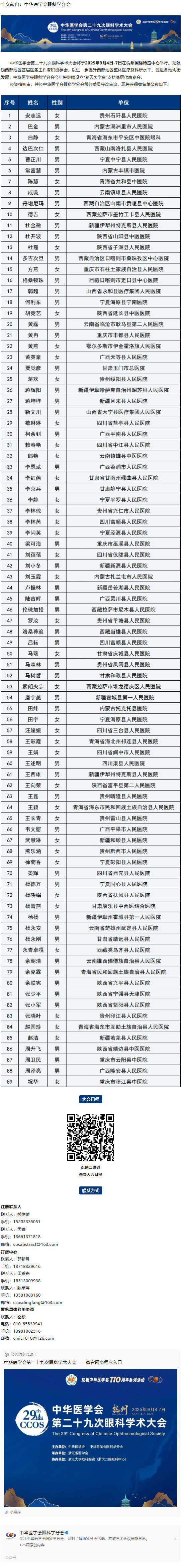 喜讯 | 中华医学会眼科学分会“参天奖学金”获得者名单公布---2025.08.19 发布时间:2025-08-19 来源: 作者: