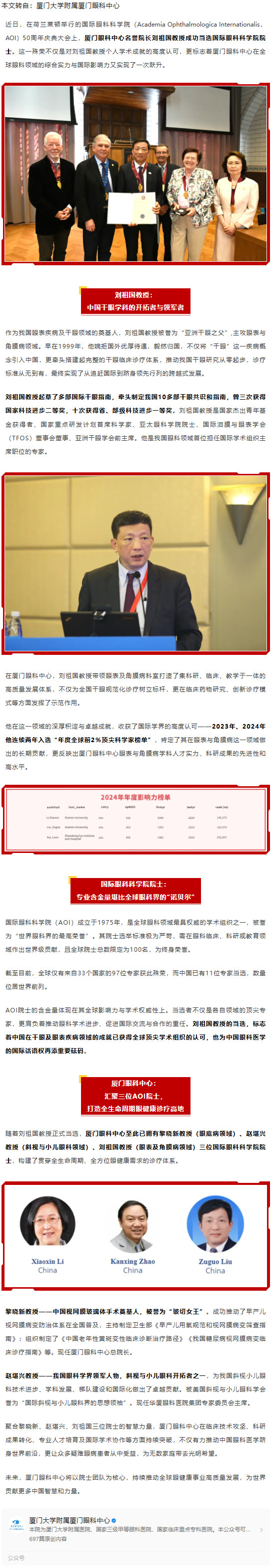 祝贺!厦门眼科中心刘祖国教授当选国际眼科科学院院士---2025.07.15 发布时间:2025-07-15 来源: 作者: