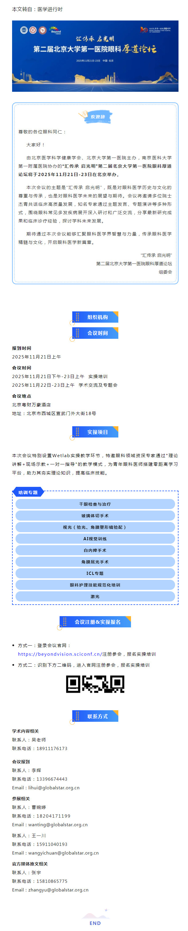 11.21-23北京丨实操报名开启丨“汇传承 启光明”第二届北京大学第一医院眼科厚道论坛--2025-10-30 发布时间:2025-10-30 来源: 作者: