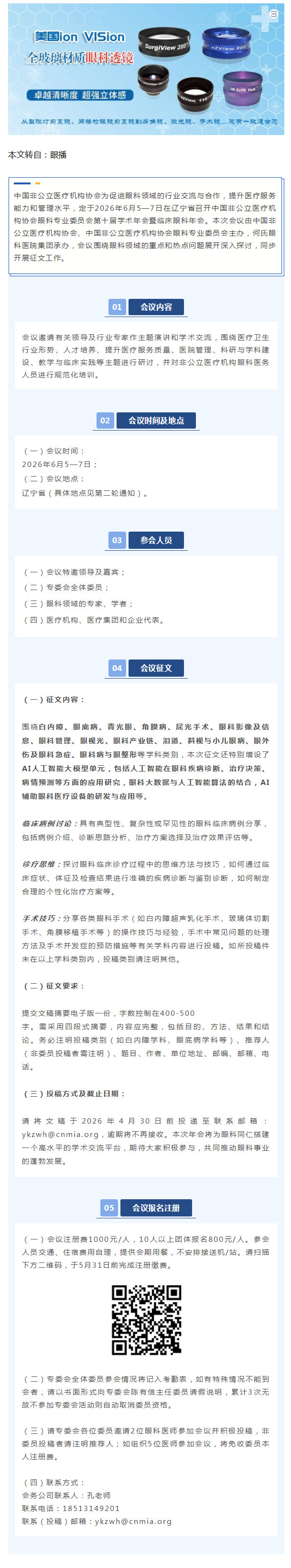 6.5-7辽宁 | 中国非公立医疗机构协会眼科专业委员会第十届学术年会暨临床眼科年会(第一轮通知)--2026-02-24 发布时间:2026-02-24 来源: 作者: