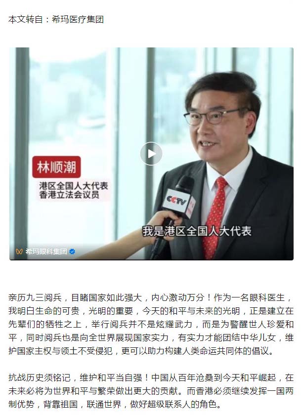 央视报道:港区全国人大代表及立法会议员林顺潮谈九三阅兵--2025-09-09 发布时间:2025-09-09 来源: 作者: