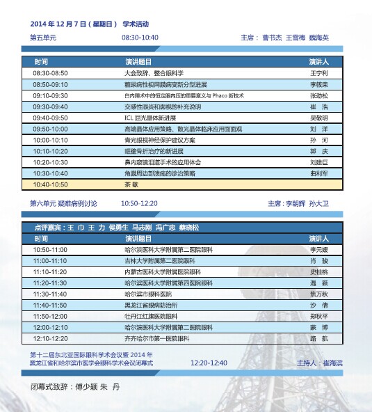 本届特邀演讲嘉宾有:王宁利 、葛 坚、马志中、董方田 、李筱荣、史伟云、 郭海科、李朝辉、黄翊彬、原慧萍、 崔 巍、赵少贞、张素华、俞素勤、罗灵等眼科专家。
