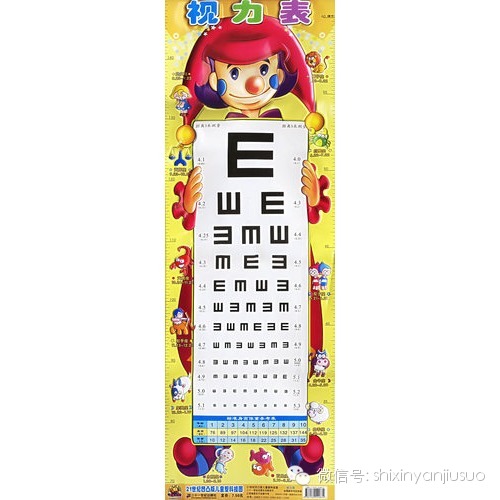 检查视力一般分为远视力和近视力两类,在我国主要使用标准对数视力表,(已于2012年5月施行第二代),此表为12行大小不同开口方向各异的“E”字所组成;测量从0.1-1.5(或从4.0-5.2);每行有标号,被检者的视