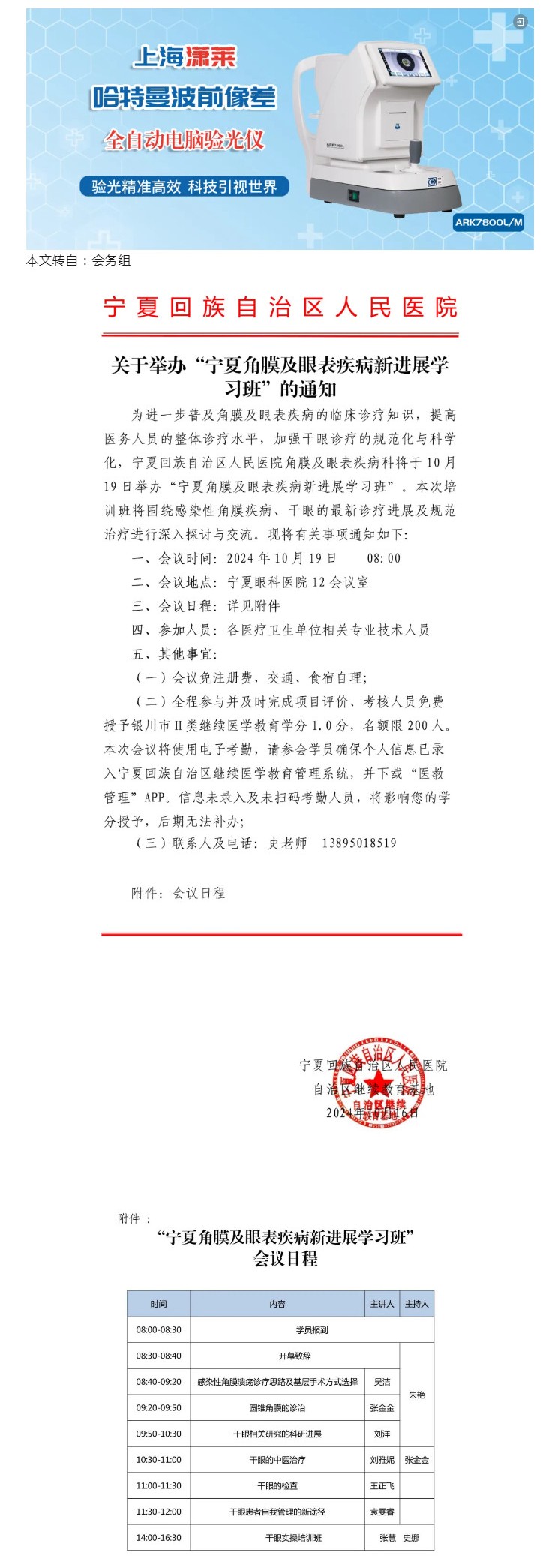 10.19 银川 |“宁夏角膜及眼表疾病新进展学习班”的通知------2024-10-17 发布时间:2024-10-17 来源: 作者:会务组