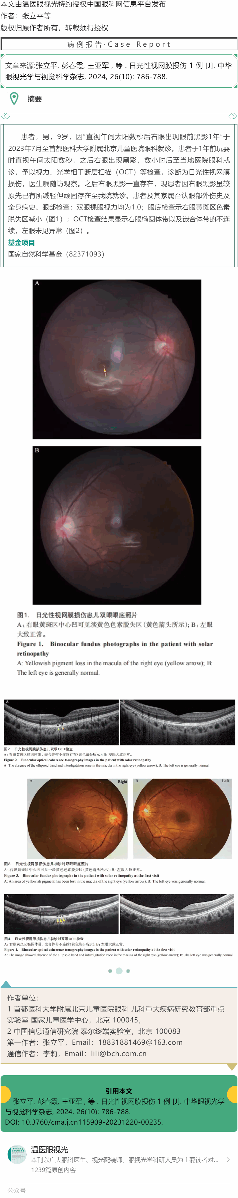 日光性视网膜损伤1例---2024.11.22 发布时间:2024-11-22 来源:温医眼视光 作者:张立平等