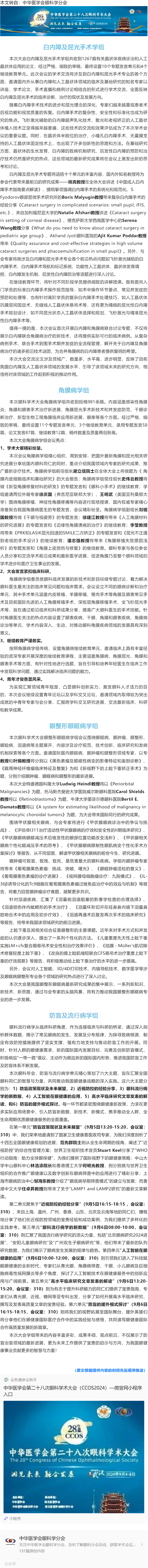 白内障及屈光手术、角膜病、眼整形眼眶病、防盲及流行病CCOS2024大会学组日程亮点(三)---2024.9.5 发布时间:2024-09-05 来源:中华医学会眼科学分会 作者:中华医学会眼科学分会