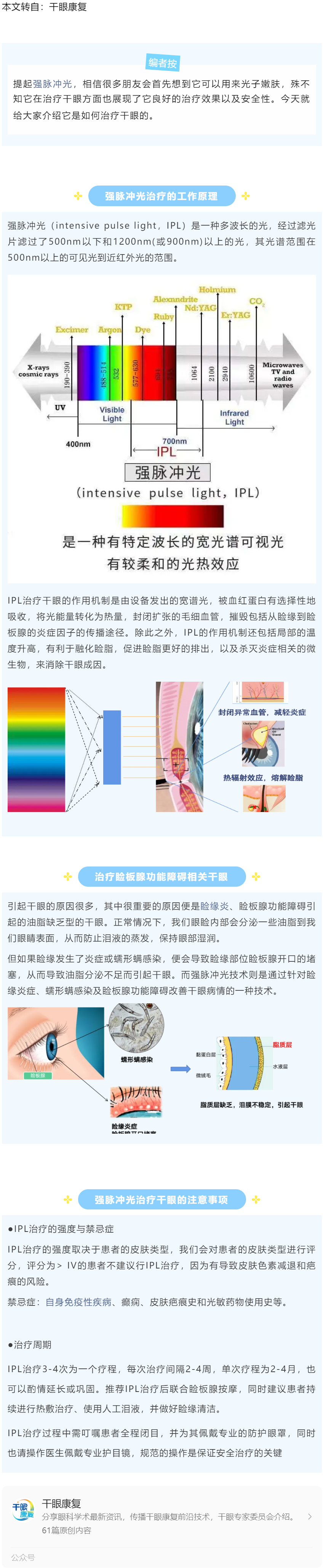 强脉冲光是如何治疗干眼的?---2024.7.23 发布时间:2024-07-23 来源:干眼康复 作者:干眼康复