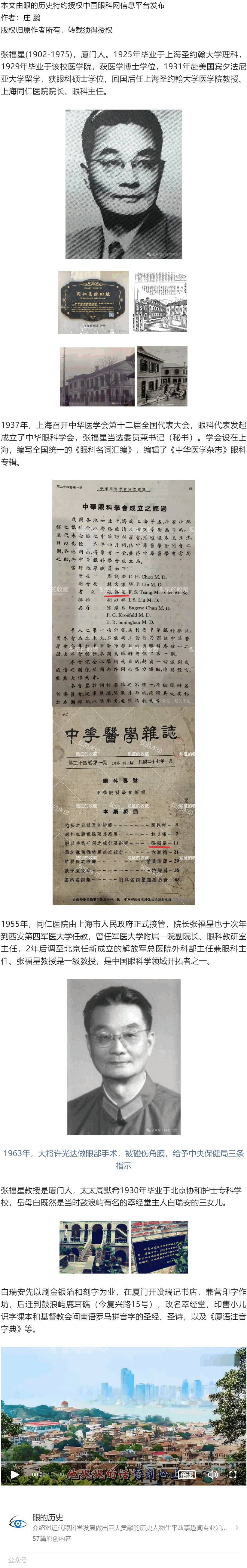 张福星:厦门走出的首任眼科学会秘书---2024.9.30 发布时间:2024-09-30 来源:眼的历史 作者:庄 鹏