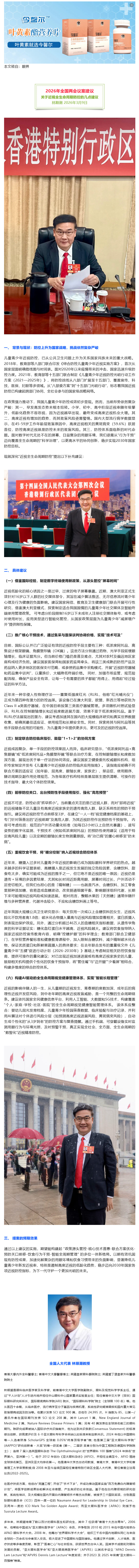 全国人大代表林顺潮教授:关于近视全生命周期防控的建议---2026-03-11 发布时间:2026-03-11 来源: 作者: