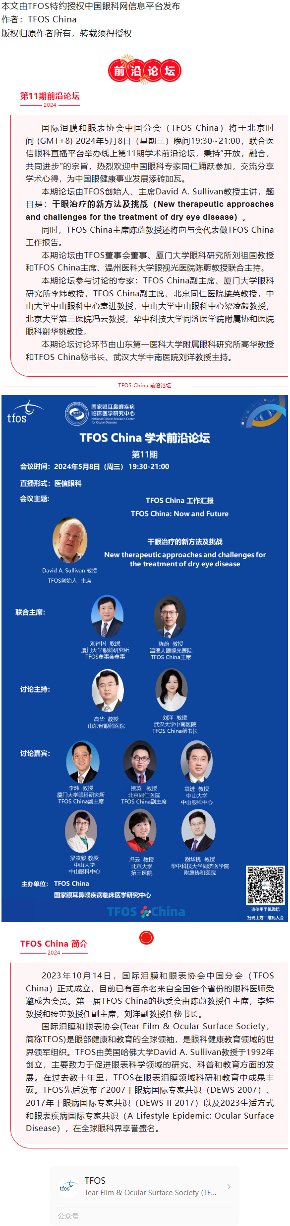 5.8直播|TFOS China第11期学术前沿论坛---2024.5.6 发布时间:2024-05-06 来源:TFOS 作者:TFOS China
