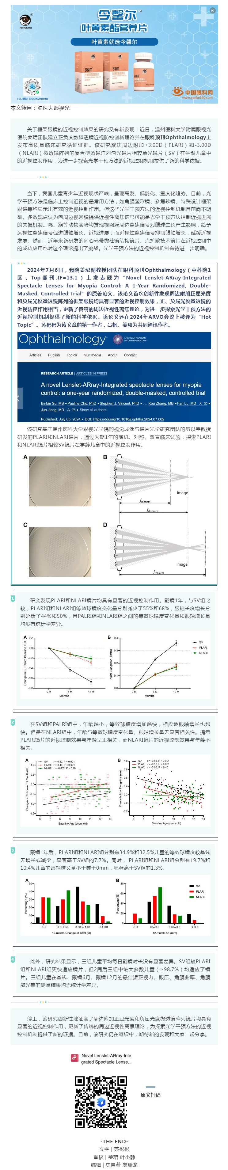 重磅!温医大眼视光姜珺团队建立正负度数微透镜近视防控创新理论并在眼科顶刊Ophthalmology发布---2024-10-28 发布时间:2024-10-28 来源: 作者: