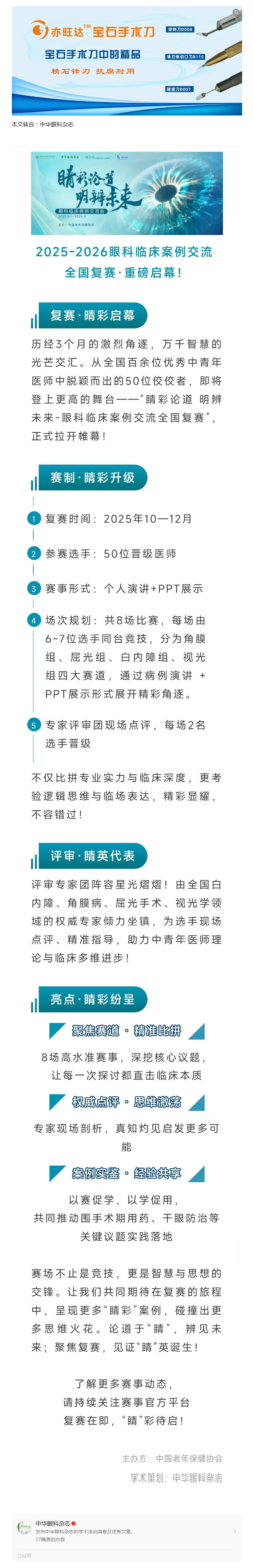 睛彩论道 明辨未来-眼科临床案例交流全国复赛---2025-10-21 发布时间:2025-10-21 来源: 作者: