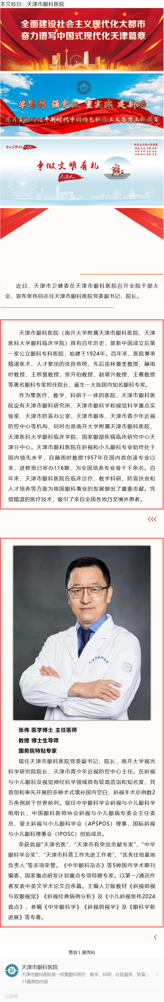 张伟同志正式担任天津市眼科医院党委副书记、院长---2024.5.10 发布时间:2024-05-10 来源:天津市眼科医院 作者:天津市眼科医院