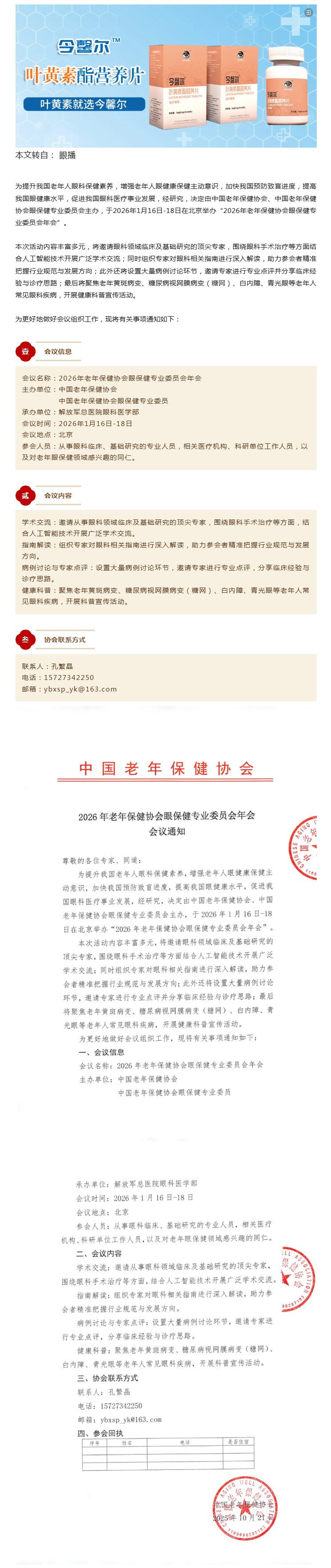 1.16-18北京 | 2026年老年保健协会眼保健专业委员会年会【会议通知】---2025-11-06 发布时间:2025-11-06 来源: 作者: