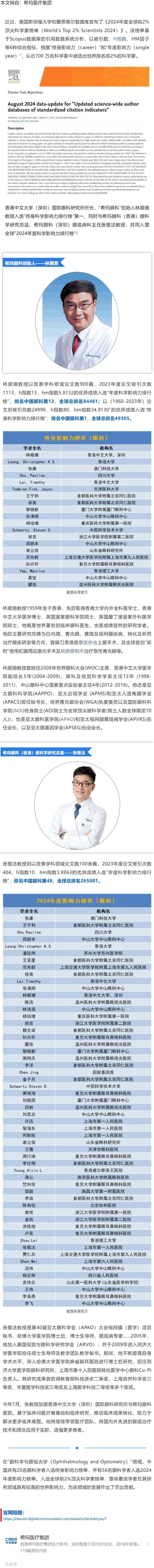 希玛眼科林顺潮教授、张敬法教授入选2024全球前2%顶尖科学家榜单---2024.9.27 发布时间:2024-09-27 来源:希玛医疗集团 作者:希玛医疗集团