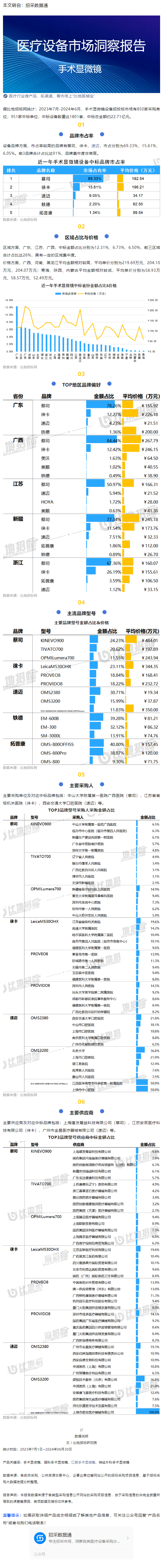 手术显微镜:近一年中标1801套,前3品牌蔡司、徕卡、速迈市占91%---2024-09-14 发布时间:2024-09-14 来源: 作者: