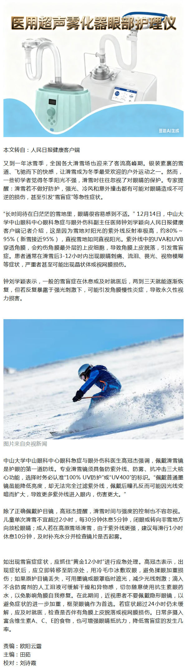 直视雪地等于直视阳光!眼科专家呼吁警惕“雪盲症”--2025-12-24 发布时间:2025-12-24 来源: 作者: