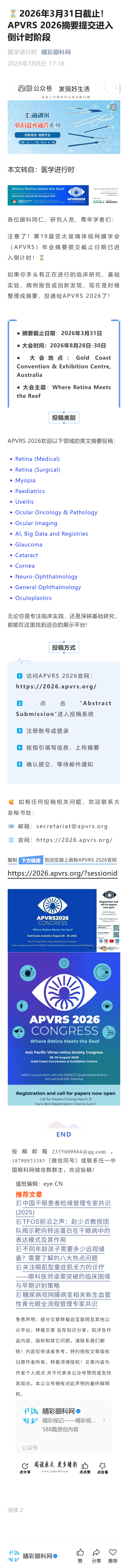新闻中心 您的当前位置:首页 > 新闻中心 > 2026年3月31日截止!A 2026年3月31日截止!APVRS 2026摘要提交进入倒计时阶段-----2026-3-6 发布时间:2026-03-06 来源: 作者: