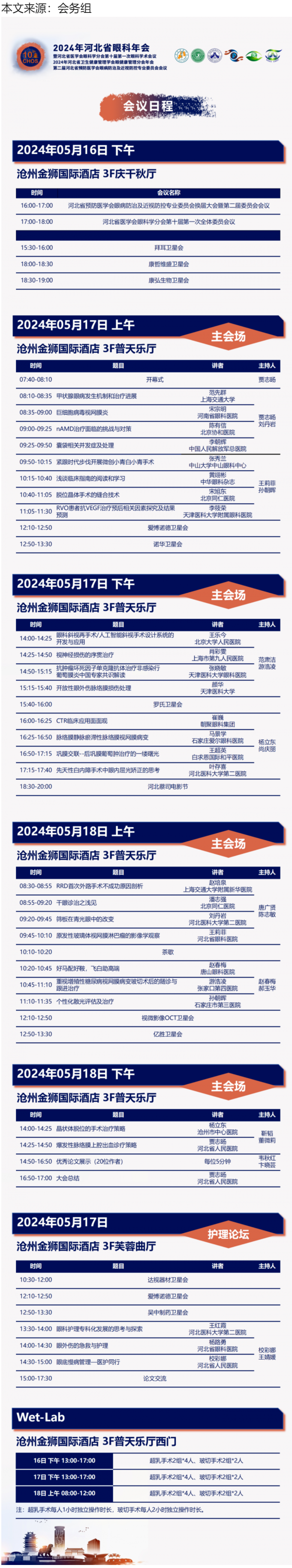 会议日程|河北省医学会第十届第一次眼科学术会议暨2024年河北省眼科年会---2024.5.9 发布时间:2024-05-09 来源:会务组 作者:会务组