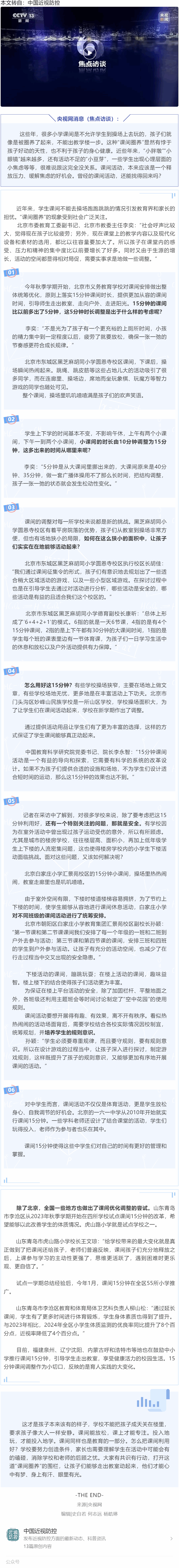 央视网《焦点访谈》:15分钟“小美好” 释放校园新活力---2024.11.8 发布时间:2024-11-08 来源:中国近视防控 作者:中国近视防控