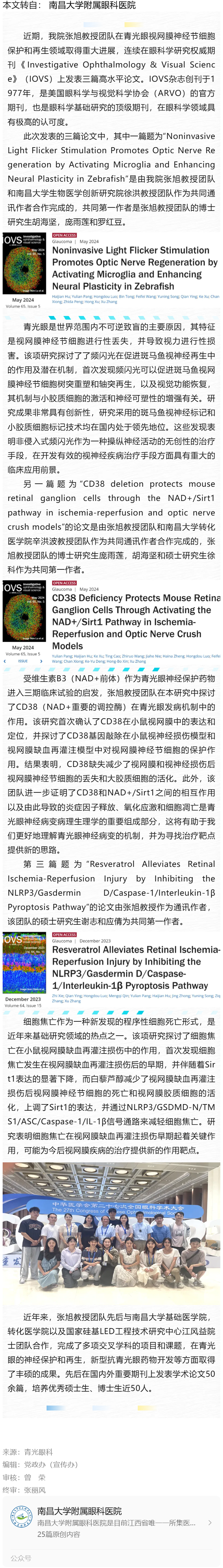 南昌大学眼科医院张旭教授团队IOVS期刊连发三篇科研论文---2024.6.11 发布时间:2024-06-11 来源: 南昌大学附属眼科医 作者: 南昌大学附属眼科医