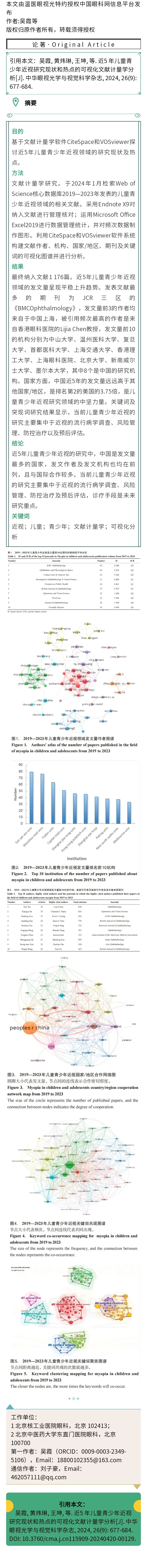 近5年儿童青少年近视研究现状和热点的可视化文献计量学分析 --2024-10-17 发布时间:2024-10-17 来源: 作者: