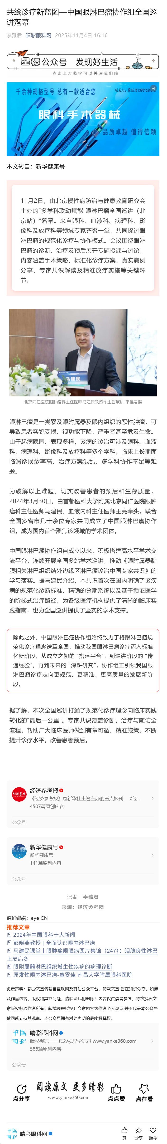 新闻中心 您的当前位置:首页 > 新闻中心 > 共绘诊疗新蓝图—中国 共绘诊疗新蓝图—中国眼淋巴瘤协作组全国巡讲落幕------------2025-11-4 发布时间:2025-11-04 来源: 作者: 原文链接