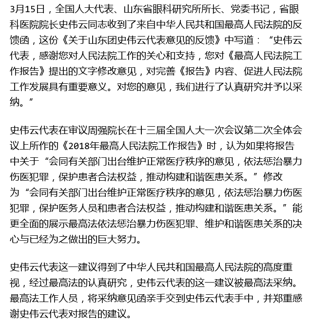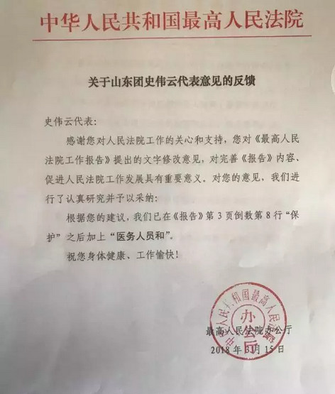 新闻中心 您的当前位置:首页 > 新闻中心 > 全国人大代表史伟云保 全国人大代表史伟云保护医护人员提议被最高法采纳-------------------2018-03-17 发布时间:2018-03-17 来源: 作者: 原文链接 更多新闻请点击: http://www.yanke360.com/news/
