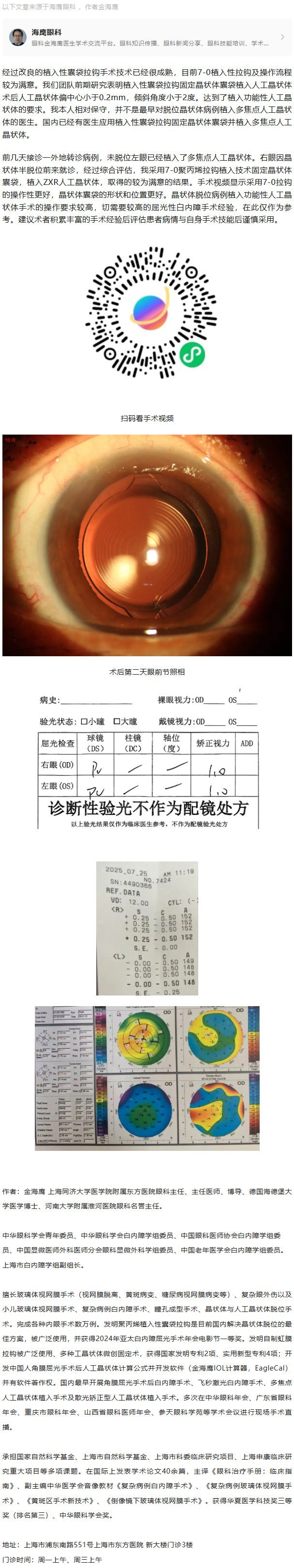 金海鹰医生:植入性囊袋拉钩复位晶状体囊袋达到植入多焦点人工晶状体的要求---2025.09.30 发布时间:2025-09-30 来源: 作者: