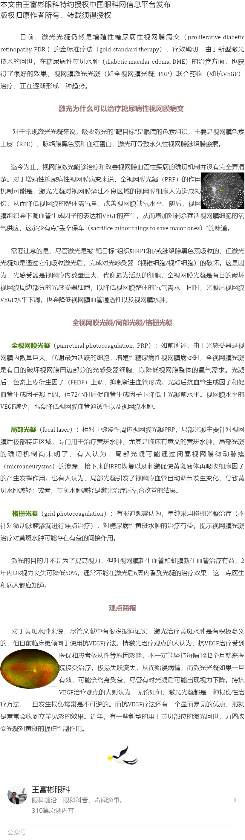 增殖性糖尿病性视网膜病变(PDR)激光治疗的几个临床观点---2024.11.18 发布时间:2024-11-18 来源:王富彬眼科 作者:上海普瑞