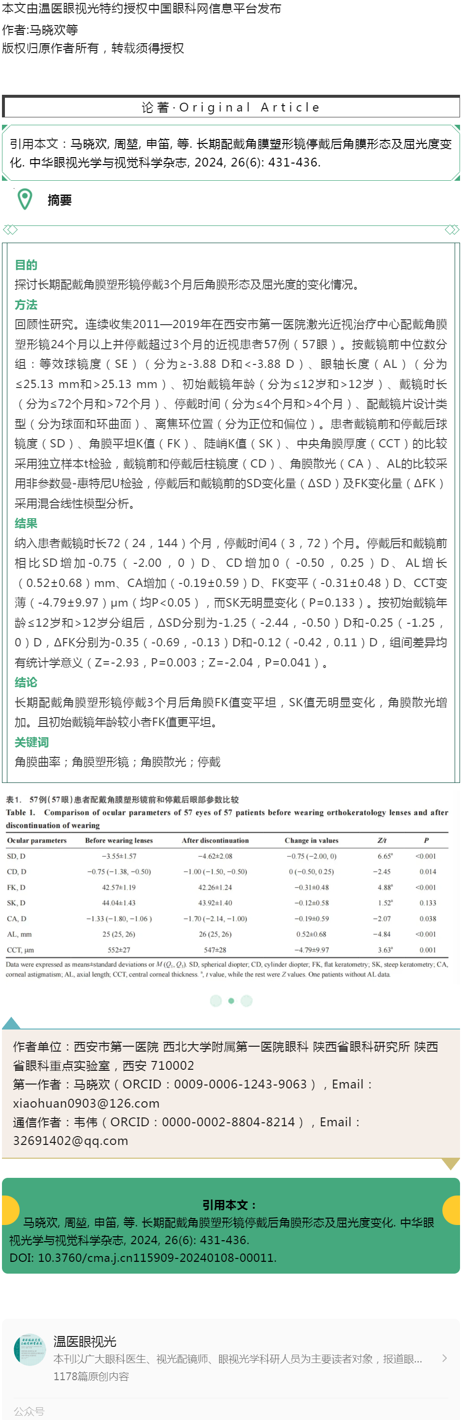 长期配戴角膜塑形镜停戴后角膜形态及屈光度变化---2024.7.3 发布时间:2024-07-03 来源:温医眼视光 作者:马晓欢等