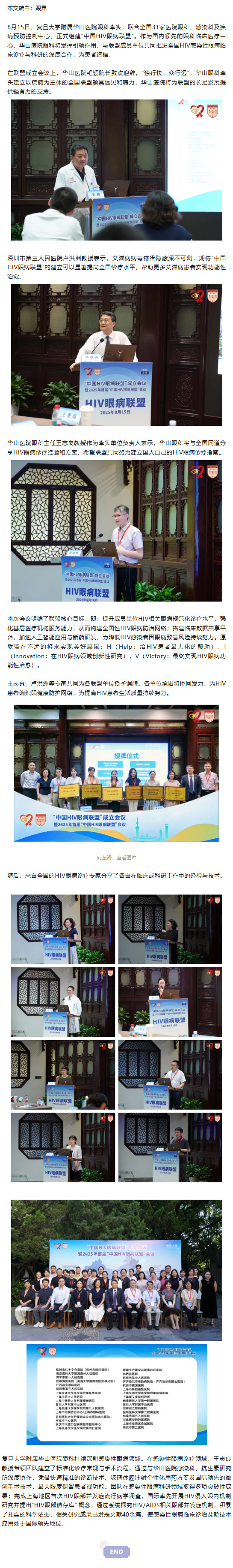 华山医院眼科牵头组建“中国HIV眼病联盟”---2025.08.22 发布时间:2025-08-22 来源: 作者: