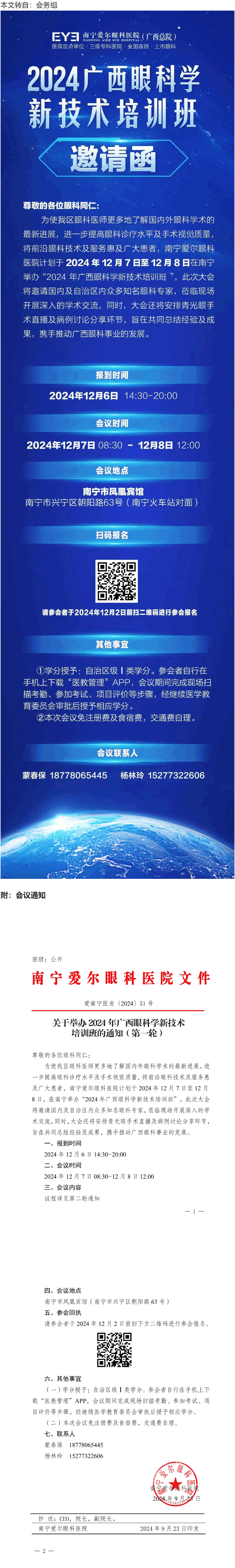 12.7-8南宁 | 2024年广西眼科学新技术培训班(第一轮通知)---2024.9.30 发布时间:2024-09-30 来源:会务组 作者:会务组