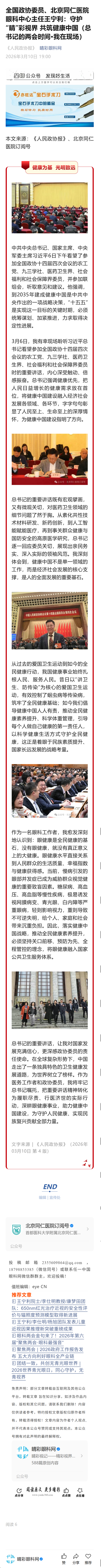 新闻中心 您的当前位置:首页 > 新闻中心 > 全国政协委员、北京同 全国政协委员、北京同仁医院眼科中心主任王宁利:守护“睛”彩视界 共筑健康中国(总书记的两会时间·我在现场)----2026-3-10 发布时间:2026-03-10 来源: 作者: