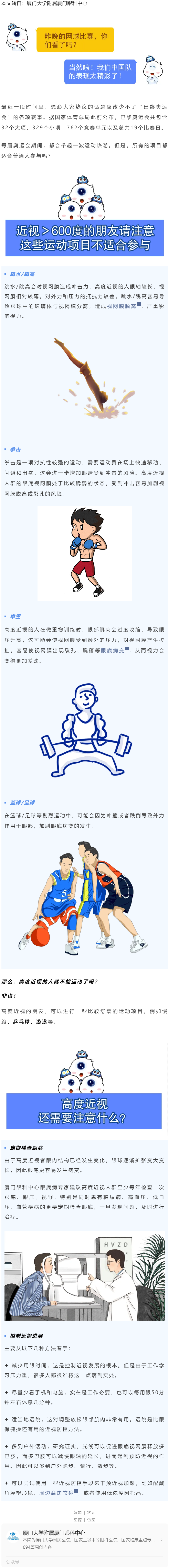 巴黎奥运会掀起全球运动热,高度近视人群切不可盲目跟风,尤其是这几类运动项目---2024.8.9 发布时间:2024-08-09 来源:厦门大学附属厦门眼科 作者:厦门大学附属厦门眼科