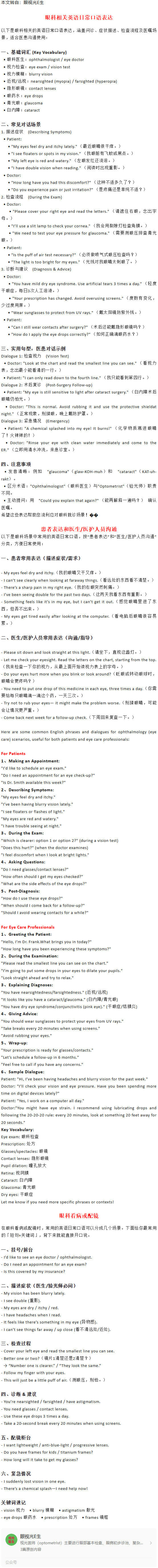 眼科英语日常口语---2025.10.17 发布时间:2025-10-17 来源: 作者:
