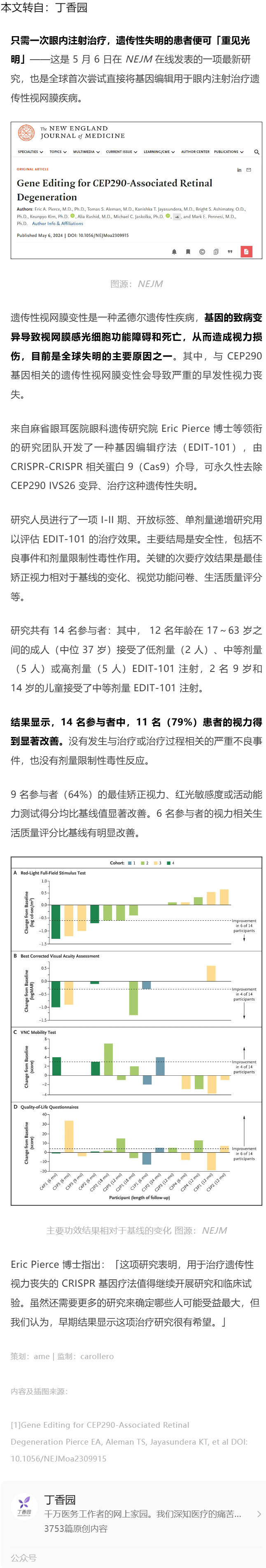 打一针就能治疗失明?NEJM 发布全球首创疗法---2024.5.22 发布时间:2024-05-22 来源:丁香园 作者:丁香园