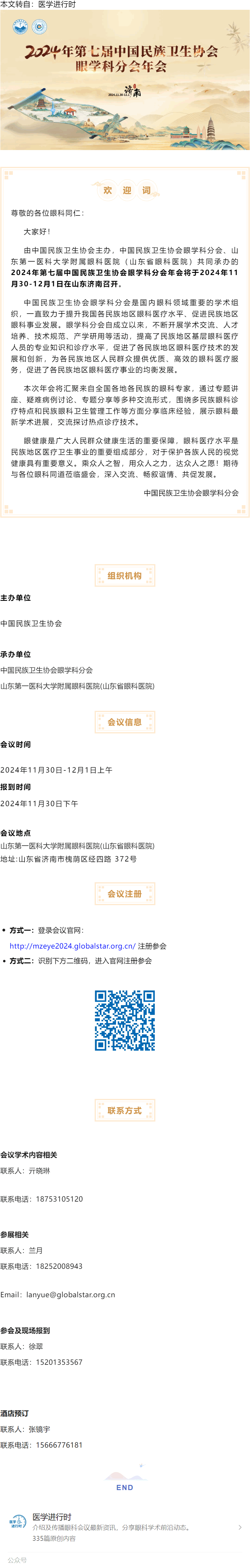 11.30-12.1济南 | 2024年第七届中国民族卫生协会眼学科分会年会---2024.11.8 发布时间:2024-11-08 来源:医学进行时 作者:医学进行时