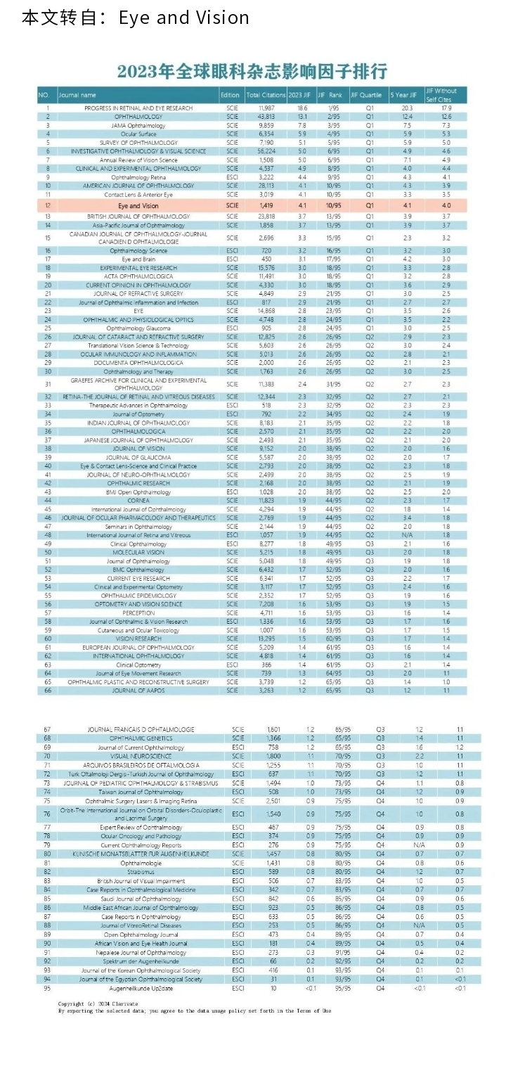 2023年全球眼科杂志影响因子排行---2024-06-24 发布时间:2024-06-24 来源: 作者: