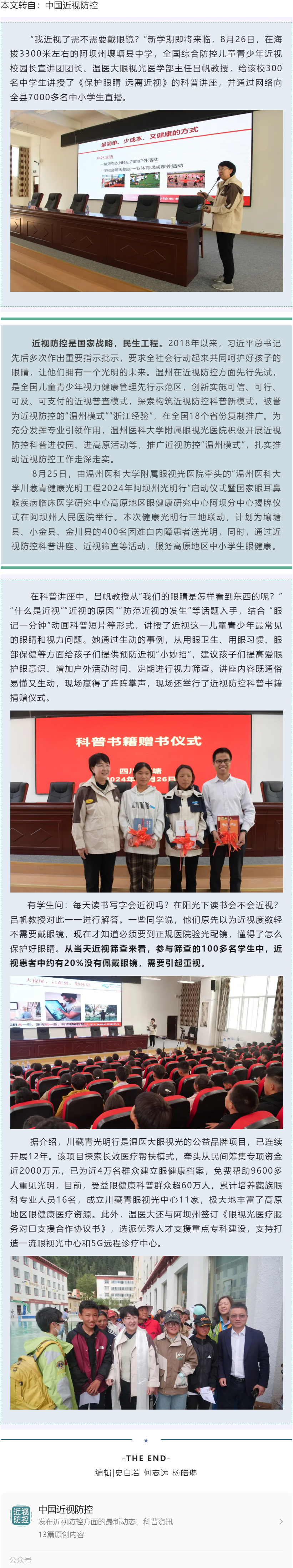 吕帆教授近视防控科普宣讲,走进3300米高原中学校园---2024.8.30 发布时间:2024-08-30 来源:中国近视防控 作者:中国近视防控