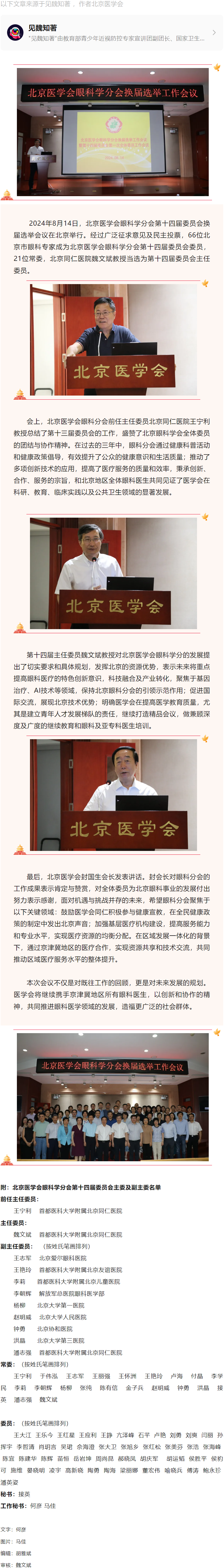 北京医学会眼科学分会近日完成换届,魏文斌教授当选为主任委员---2024.8.23 发布时间:2024-08-23 来源:见魏知著 作者:北京医学会